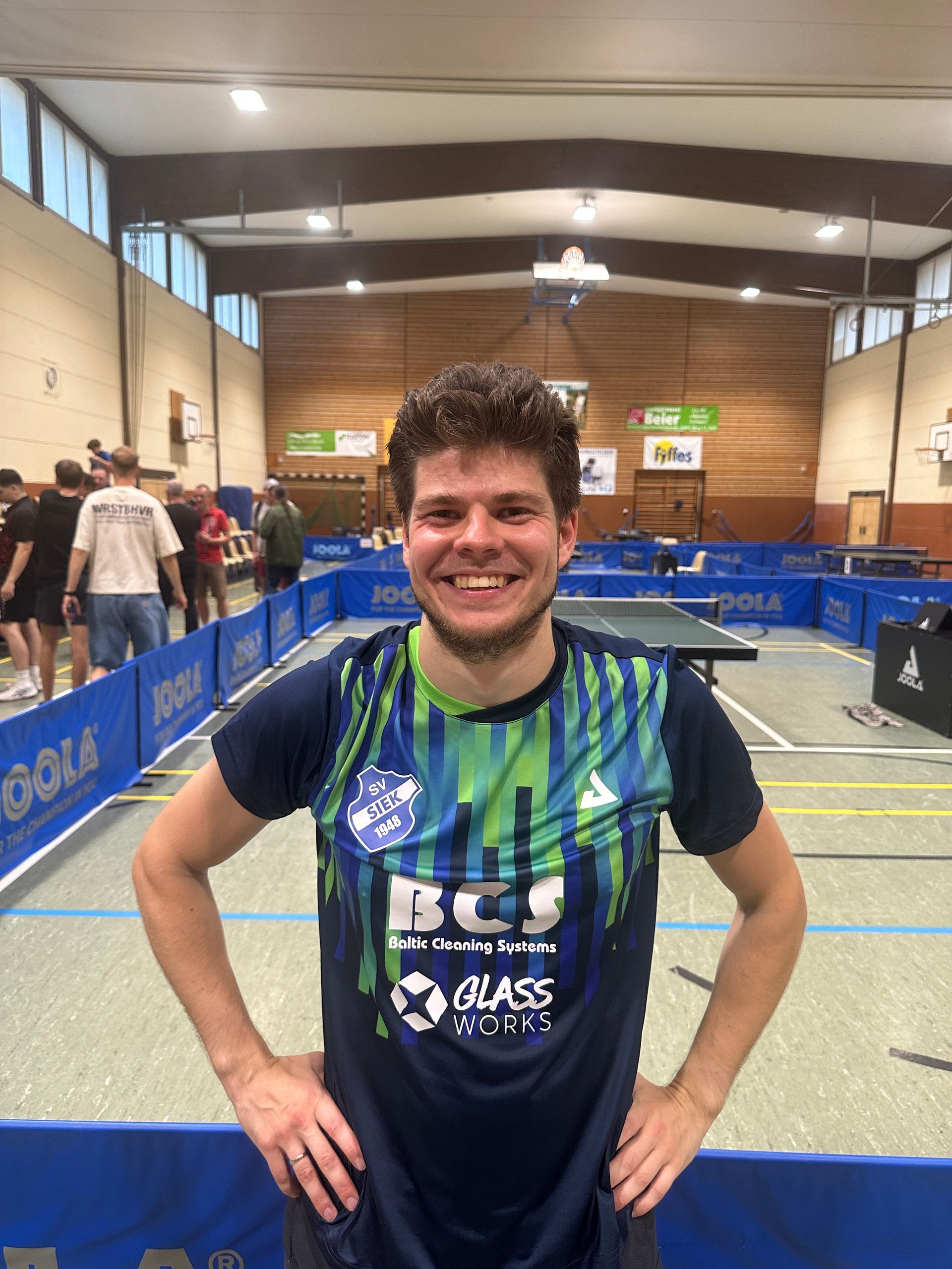 Sebastian ist kurzfristig für den verletzten Heye Koepke ins Feld gekommen. Sebastian spielt seit Jahren auf hohem Niveau, ist einer der beständigsten Spieler und zaubert mit viel Ballgefühl die unmöglichsten Bälle auf den Tisch. Er ist mehrfacher Berliner und norddeutscher Meister, spielt aktuell für die Füchse Berlin in der 3. Bundesliga (ehemals auch schon für den SV Siek in der Bundesliga) und gehört zu den Top Favoriten des TTNM.